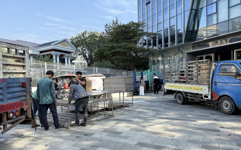 On Tuesday, workers could be seen removing furniture and other equipment from the Prince Group’s headquarters on Koh Pich island in Phnom Penh.